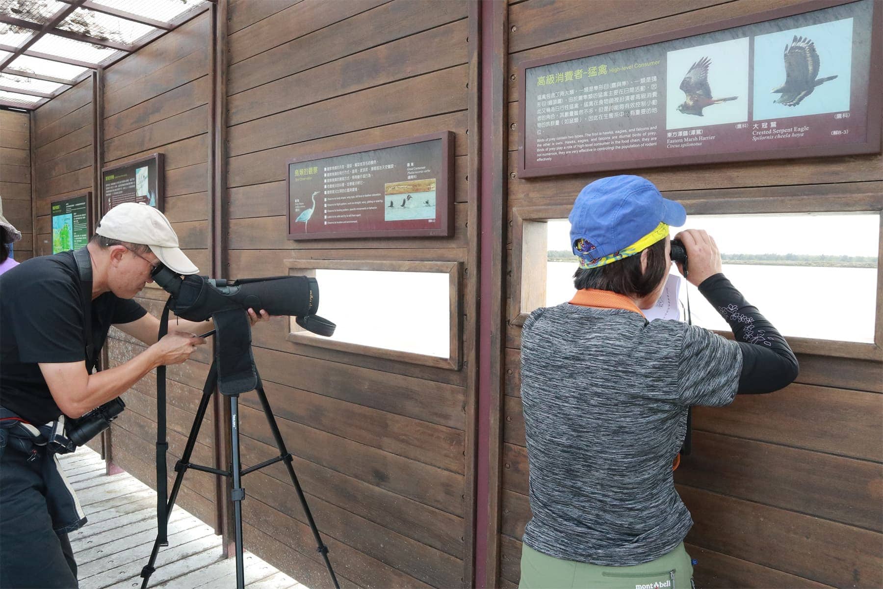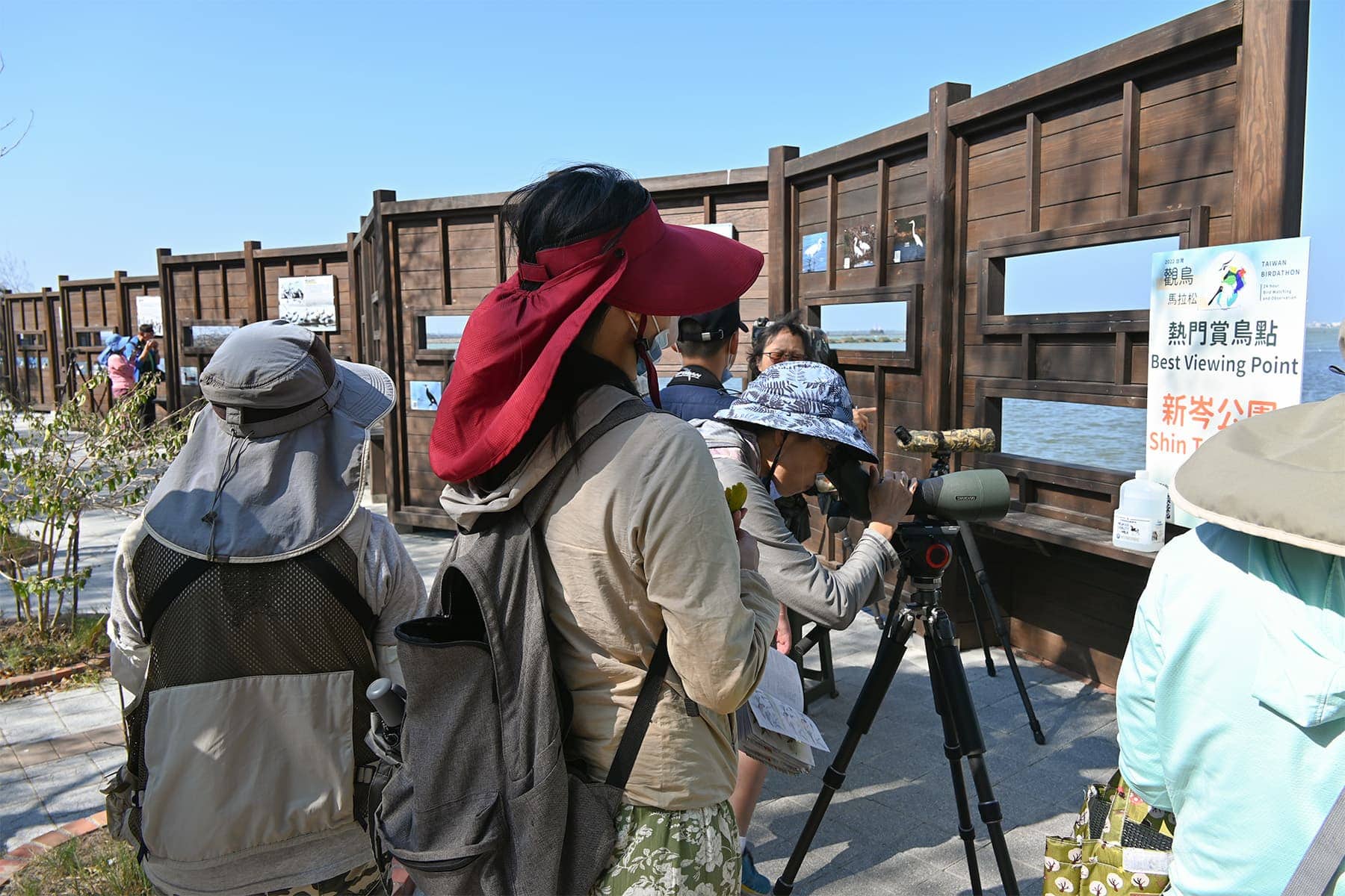 持續舉辦觀鳥小旅行、賞鳥帶路人培訓課程,今年更特別結合南瀛天文館推出觀星導覽培訓,並首次推出定點(時)導覽解說,提供遊客預約前來賞鳥之專業解說,同時於口湖、北門及七股遊客中心準備「賞鳥專用望遠鏡」和「臺灣常見野鳥圖鑑」供民眾免費借用。