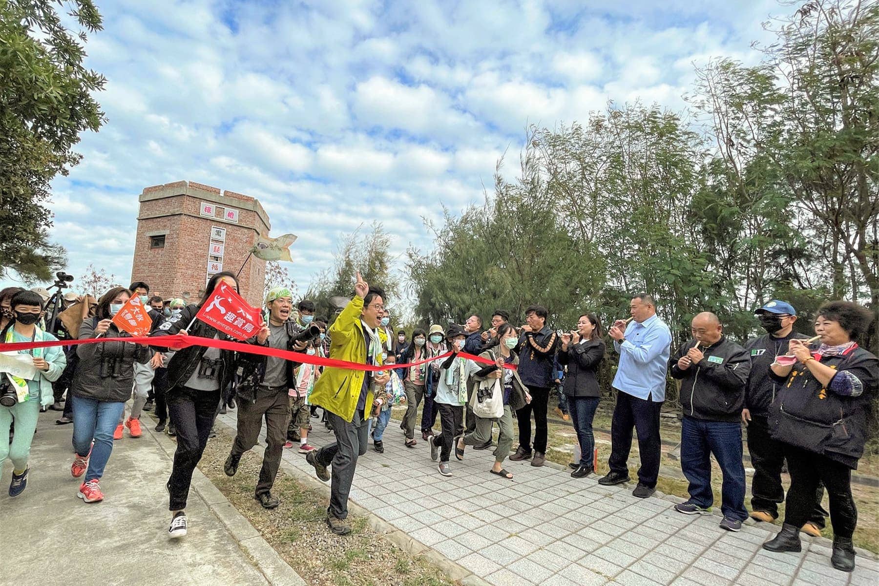參賽隊伍獲贈限定的平安鹽袋,祝福觀鳥一路平安,在北門遊客中心前吹響鳥笛後出發,競逐觀鳥。
