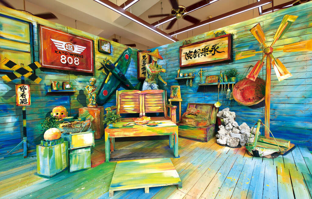 On the second floor of the exhibition area, old photos and installation art are used to present the life of the residents of Budai. One of the three-dimensional paintings is very impressive, which looks like a flat oil painting when photographed, but in fact, it is a large installation art made by the artist who painted the tables and chairs and other three-dimensional real objects with oil painting-like colors. It makes you feel like you are the main character in the painting when you visit this place.