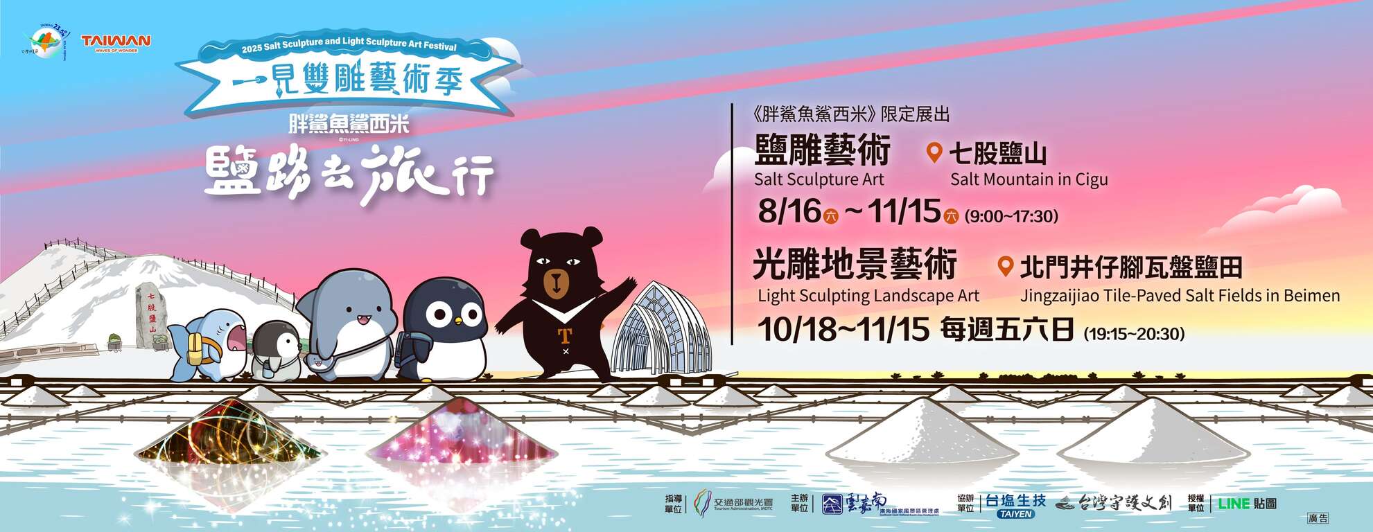 The Salt & Sand Sculpture Art Festival combines innovative salt products, the salt industry culture, and scenes of beach and sea. The two major tourism resources here were first combined in 2012 through the creation of artworks using salt and sand, and their integration into tourism activities. Grains of salt and sand, along with tourism, small-town stories, local culture, and art creation, are brought together to exhibit the new allure of the Southwest Coast. The offering of abundant coastal tourism experiences stimulates tourism development in surrounding areas and creates a new tourism brand that features "salt sculpture in the south, sand sculpture in the north."