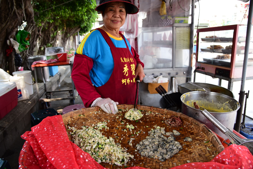 The “Xiu Bi Oyster Fritter” store at Sanliaowan is set up under the banyan outside the Dong-Long Temple in Sanliaowan, Beimen. There is no resident from Sanliaowan community who has not tried “Xiu Bi Oyster Fritter”.