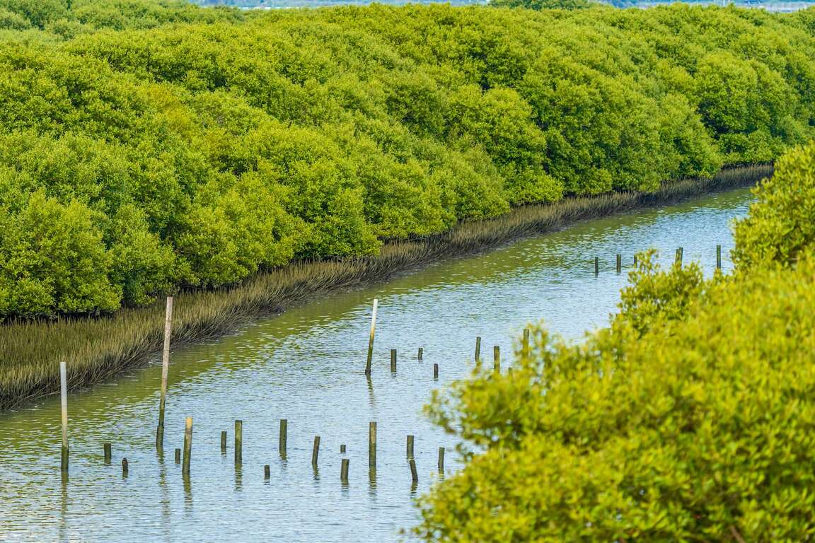 「七股マングローブ保護区」は七股溪の河口付近にあります。上流から大量の腐植土と営養塩が運ばれ堆積しているため、一般の海岸地区より肥沃で、シオマネキなどの甲殻類、各種魚類、貝類等、鳥類に格好の棲家を提供しています。またそのため、ここでは完璧な食物連鎖が存在しています。