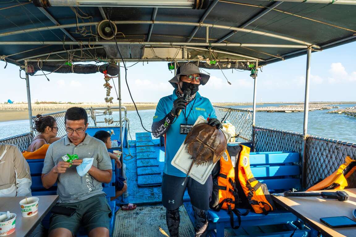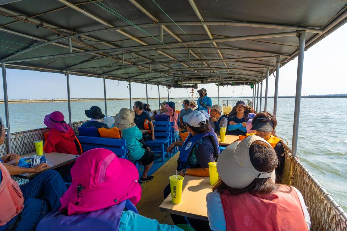 吹著海風,搭乘海上巴士遊港觀賞潟湖生態、海洋生態,透過蚵田牧場解說,體驗海上採蚵的樂趣;踏上沙質如同蛋糕般柔軟的無人島海灘,感受未被過度開發的自然生態。