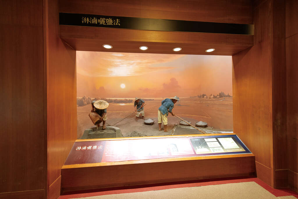 鹽博館東面為廣盈鐘乳石館,北面為鹽工住宅群,西面則為荒廢的機械鹽田,並與七股鹽山遙遙相望。走進大廳首先映入眼簾的是仿造當年鹽田風光景緻,讓人返回四、五十年代鹽田生活情境裡,體會鹽工生活的酸甜苦辣。