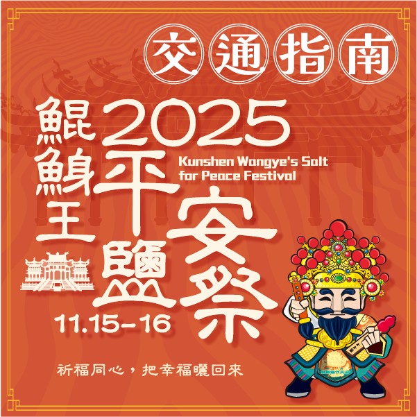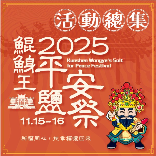 - 2025鯤鯓王平安鹽祭|平安與你同在鹽象徵潔淨與祈福,結合王爺信仰與鹽業文化的「鯤鯓王平安鹽祭」,自2004年舉辦至今邁入第22年 活動日期|11/15(六)– 11/16(日) 地點|南鯤鯓代天府、井仔腳瓦盤鹽田等地 活動亮點 ・平安鹽袋領取:捐3張9–12月發票可兌換平安鹽袋 ・導覽解說:中、英文場次帶領民眾認識王爺信仰與鹽祭起源 ・囡仔公童玩節:傳統遊戲與親子互動表演 ・晚會演出:11/15(六)18:00–20:00 盛大登場 ・日間舞台節目:魔術、音樂、舞蹈接力演出 ・跋桮挑戰賽:民俗競賽拚手氣,總獎金逾20萬元 ・六廟祈福集章趣:集滿印章可兌祈福收納袋(限量300份) ・觀光圈市集:雲嘉南美食與文創好物齊聚 ・親子DIY:製作祈福鹽彩瓶、鹽藝祈福盒 ・數位牌樓探索:重現代天府的信仰記憶 ・祈福鹽發送:11/16(日)17:30開放領取 ・祈福之夜:11/14(五)19:00序曲登場,限定加碼演出。 邀你走進南鯤鯓,在鹽的潔淨與信仰庇佑中,感受土地的溫度與平安的力量2025-11-06