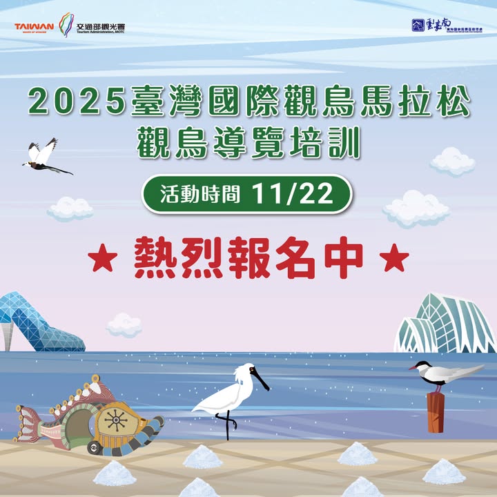 - #2025觀鳥導覽培訓 | #報名開始!🪶熱血召募想更深入認識鳥類生態、學會用 eBird、Merlin 探索世界的你! 這場一日限定的 #觀鳥培訓,帶你從教室到濕地, 親身體驗專業導覽與野外實作,一起打開飛羽的祕密之門 地點:臺南 #北門遊客中心 日期:11/22(六)08:45–17:00 免費參加|限額 80 名 對象:18 歲以上、熱愛賞鳥、攝影與自然觀察者 全程參與可獲得限定贈品與結訓證書 報名資訊請見留言區 與我們一起,用雙眼與心感受飛羽的詩意 #2025臺灣國際觀鳥馬拉松 #雲嘉南Bird棒 #2025TaiwanInternationalBirdathon2025-11-05