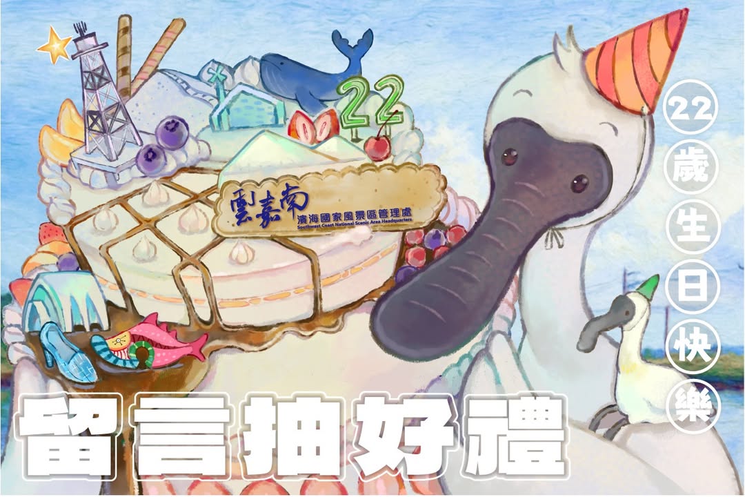 - #22nd生日快樂|#雲嘉南濱海國家風景區雲嘉南濱海國家風景區 22 歲了!感謝大家這些年來的陪伴與支持,讓我們一路走到今天 儘管今年夏天歷經風災的考驗,但我們從未停下腳步── 依然懷抱對這片土地的熱情,繼續與大家攜手前行,編織屬於我們的濱海故事 在這個重要的日子裡,我們精心準備了一些驚喜,獻給一路同行的你,也誠摯邀請更多朋友一起加入,為雲嘉南送上最溫暖的祝福 活動時間|即日起 ~ 12/23(二)23:59 止 參加方式 按讚並公開分享這則貼文 追蹤 雲嘉南,好好玩!!!(雲嘉南濱海風景區) Tag @兩位朋友 並留言「#雲嘉南濱海國家風景區22th生日快樂」 留言範例 「@虱目魚小子 @海蘿菈鹽精靈 #雲嘉南濱海國家風景區22th生日快樂」 生日好禮 限量珍藏|雲嘉南22nd生日一卡通 + 手機氣墊支架(10名) 超級實用|雲嘉南濱海國家風景區專屬行動電源(2名) 得獎公告|12/24(三)將於中獎留言區回覆並標註,不另公告名單喔! 注意事項 中獎者請於 12/31(三)23:59 前 將「中獎留言截圖」(需含 自己的帳號名稱 + 官方帳號回覆) 寄送至信箱:tadswcoast.fun@gmail.com 信件主旨請註明:「22nd生日快樂_中獎者」 寄出後將有專人與您聯繫 逾期或資料不齊者,將視同放棄資格 主辦單位保留活動調整與最終解釋權 這個生日,因為有你,變得更特別,邀請你一起寫下祝福的留言,與我們共度這段珍貴時光! #感謝有你 #抽獎活動 #浪漫海線 #生日快樂 #扌由2025-12-01
