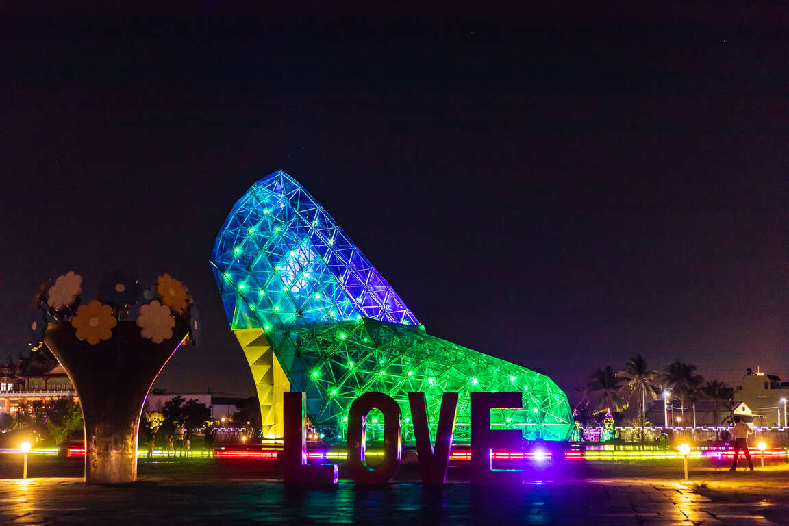 嘉義布袋早期鹽業盛行的土地上,打造高跟鞋教堂,在耀眼的陽光下猶如鹽晶般閃耀,而每粒結晶鹽代表早期鹽工們努力的果實,如今透過高跟鞋踩碎瓦片的意象,象徵開啟新的歲月,也是幸福的起點。