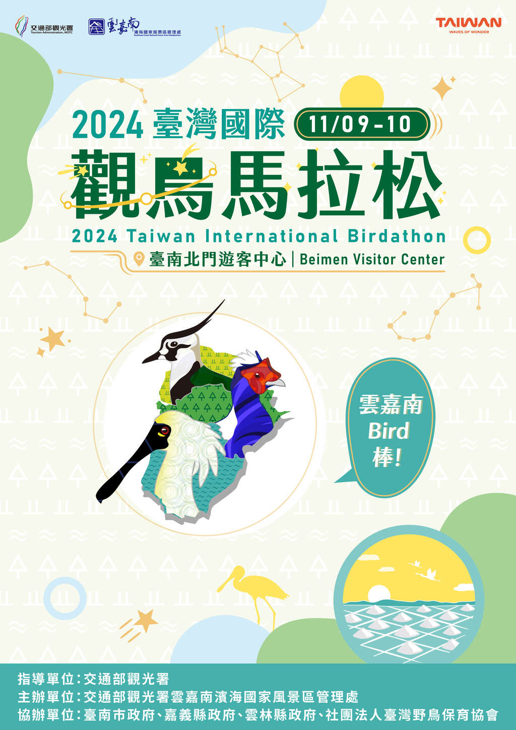 臺灣獨特且珍貴的自然資源造就優秀的賞鳥環境,參加者在24小時的比賽時間內,循著大會推薦的最佳觀鳥路線,或自行規劃路線,以拍攝雲嘉南生態濕地的鳥類、或聽到的鳥種紀錄,再由觀鳥經歷豐富老師進行評審。活動融入生態寓教於樂,也適合樂齡人士及廣大民眾,來場雲嘉南賞鳥生態旅遊,一探濕地與生態之美。
