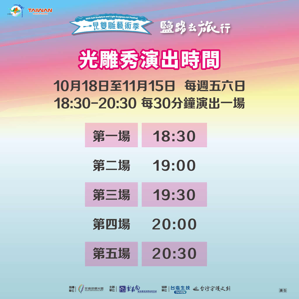 接駁車時間:展演日每日 17:00-21:00北門遊客中心往返活動會場