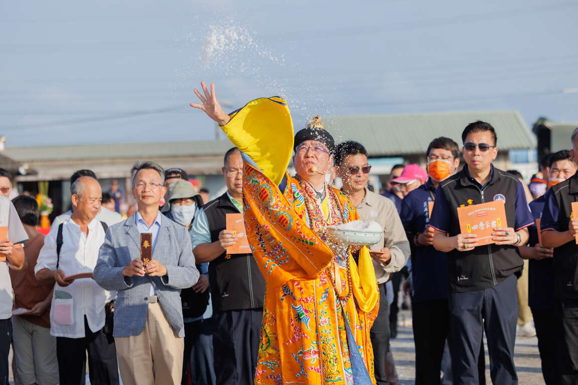 至平安鹽祭的尾聲,需將鹽送回北門井仔腳,從請鹽到還原,—來一往表現出天地生生不息的意象。在此科儀階段,會邀請現場信眾共同參與,將鹽放置瓦片上,人手一片,隨著大法師的經文將鹽撒回鹽田、回歸大海,為鯤鯓王平安鹽祭劃下完美的句點。