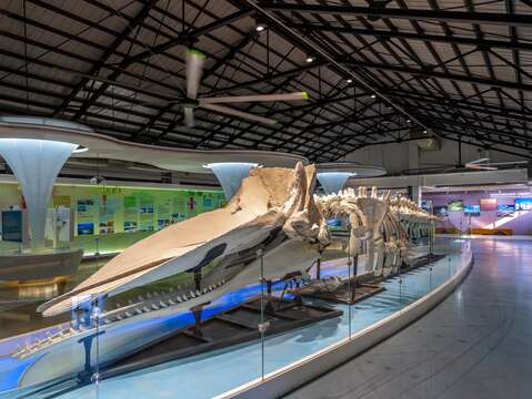 館內正中央展示的抹香鯨骨骼標本