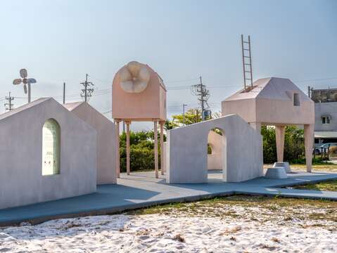 保留北門洗滌鹽工廠倉庫的山牆斜屋頂造型