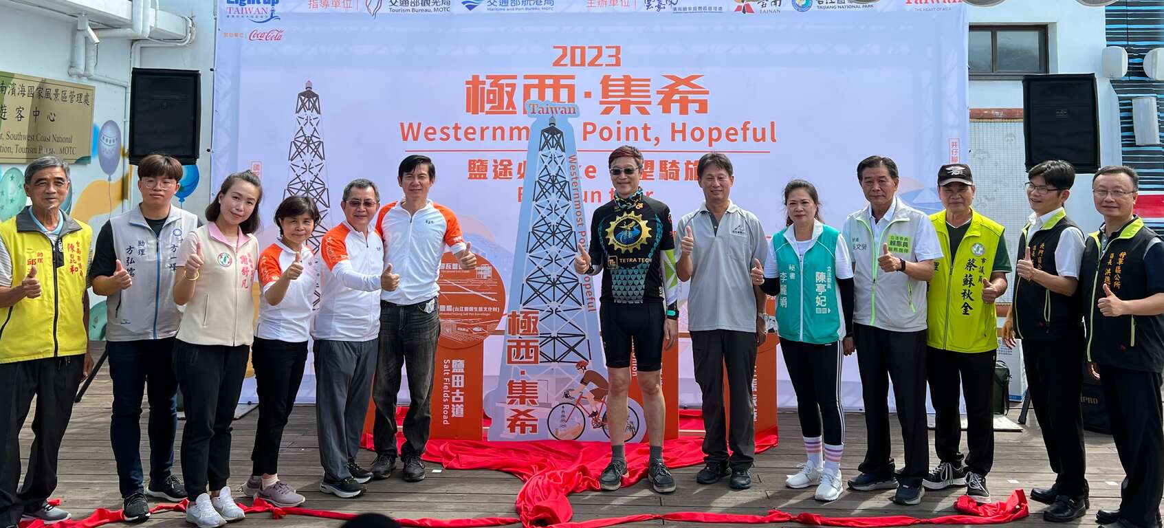 今(18)日於北門遊客中心舉辦啟程儀式,由交通部觀光局林信任副局長與臺南市政府、航港局、台江國家公園等機關代表、雲嘉南濱海觀光圈業者以及300名來自全台各地的車友,騎往台灣本島極西點-國聖港燈塔。林副局長表示,交通部觀光局依循交通部建置自行車路網政策,將自行車運動與各地特色景點結合,推出濱海型、河岸型、田園型、環山型、山岳型以及離島型等六大類型共16條多元自行車旅遊路線,今日活動即包含了其中夕鹽段(編號31-1)及台江段(編號33)2條路線,推薦車友們放慢車速,進入各景區,一邊騎、一邊玩、一邊買,體驗雲嘉南濱海觀光圈的魅力!