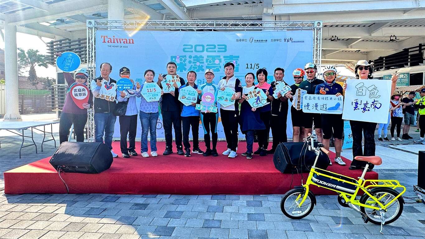 由交通部觀光署雲嘉南濱海國家風景區管理處(以下簡稱雲嘉南管理處)主辦的「2023踩漾雲嘉」自行車漫遊活動,今(5)日於雲林口湖遊客中心舉行,活動以「雲林-椬梧×We Ride」為主題,搭配目前雲嘉南濱海秋、冬最夯的候鳥季,規劃由專業鳥導帶著遊客,騎乘自行車進入各個賞鳥熱點進行導覽。今日中華民國旅館商業同業公會全國聯合會洪崇元理事長、金湖休閒農業發展協會蔡云姍專案經理、嘉義縣布袋街區觀光發展協會陳啟宗總幹事及臺灣野鳥保育協會黃蜀婷理事蒞臨現場,並且雲林縣長張麗善、雲林縣議會副議長蔡咏鍀及議員黃文祥也指派代表到場為活動鳴笛啟動,今日活動由喜愛自行車運動的音樂才女康倪媚擔任活動嘉賓,跨界「生態×音樂×運動」,現場計有兩百位以上車友齊聚賞遊濱海風光。