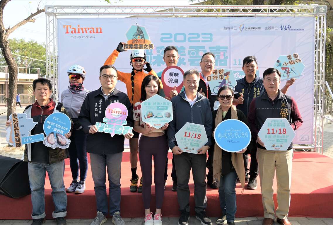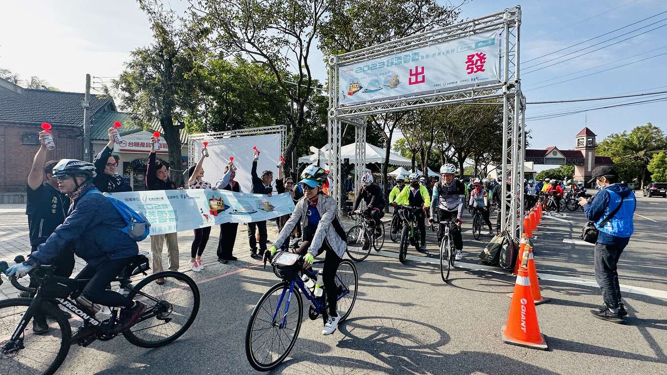 「2023踩漾雲嘉」秋日鐵馬自行車慢遊活動今(18)日於嘉義「蒜頭糖廠蔗埕文化園區」舉行,以「嘉義-好美×美好」為活動主題,交通部觀光署雲嘉南濱海國家風景區管理處(以下簡稱雲嘉南管理處)副處長洪肇昌、中華民國旅館同業公會全國聯合會理事長洪崇元、海巡署中部分署第四岸巡隊副隊長黃仁鴻、嘉義縣議員李國勝、姜梅紅議員服務處主任姜鈞翔、雲林縣口湖鄉金湖休閒農業發展協會專案經理蔡云姍、臺南市北門產業文化觀光發展協會理事長洪有志、馬沙溝觀光休閒協會理事長陳啟宗以及臺灣野鳥保育協會秘書長李昱宏等貴賓,在現場為近300位來自各地的車友鳴笛出發後,與遊客一同搭乘復刻臺灣早期糖廠鐵路列車,轉變成現代冷氣舒適的五分車廂,沿途欣賞蔗糖文化,前往全國第一座亞洲宏觀思想策劃展覽的藝術文化博物館「故宮南院」,體驗嘉義在地糖業與藝術文化,並搭配雲嘉南秋、冬最夯的候鳥飛羽季,結合專業賞鳥達人,導覽南布袋濕地的鳥類盛況。