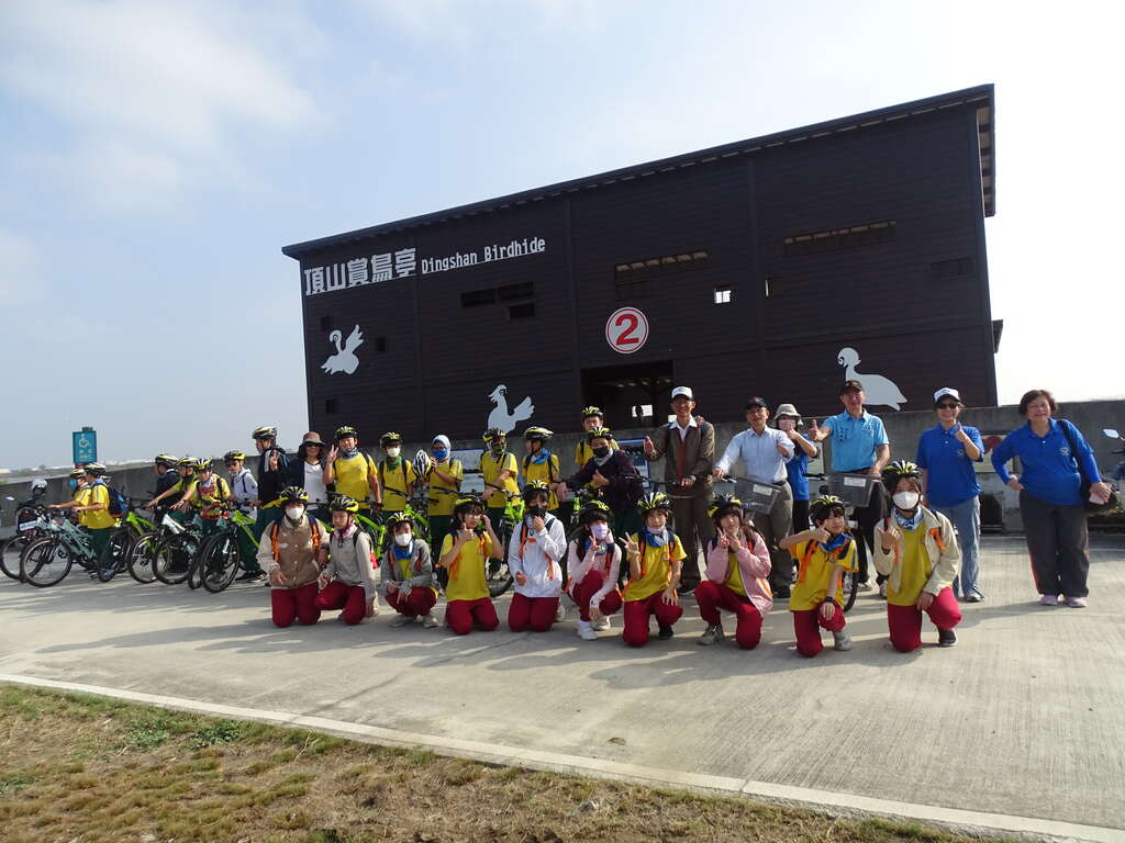 位於七股鹽田重要濕地學區內的臺南市七股國小,11月14日在王琬婷校長的帶領下,持續發展全人素養及多元技藝學習的教學理念,為了同時兼俱認識在地豐富鄉土資源的永續環境行動,琬婷校長帶領30位師生騎著單車從學校出發,參與七股遊客中心所推動的低碳輕旅行活動,在雲嘉南濱海國家風景區管理處與在地社團導覽人員,由許宗民處長領騎之下,探索著與課本教材一起搭配的戶外教室,在七股遊客中心一窺整個海岸線的樣貌,到頂山賞鳥亭觀賞黑面琵鷺等珍稀水鳥,到扇形鹽田看到生命之樹立於像扇子的鹽田當中,再到青鯤鯓看到當季烏魚剖腹取子,路邊都是黃澄澄的烏金烏魚子,最後來到了七股鹽山導覽臺灣鹽業檔案特展,七股國小六年級學生陳同學說,這一路根本就是教室的延伸,靠著雙腳騎著單車感受著豐富的戶外教室,同時也更認識自己家鄉的文化與生態。臺灣黑面琵鷺保育學會洪玉華理事長說,在國有財產署的協助下,六個NGO團體組成七股將軍鹽田復育聯盟認養了這一片鹽田濕地,持續推動濕地明智利用,歡迎大家前來走訪。