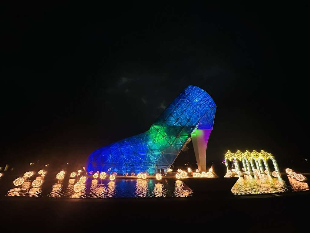 雲嘉南管理處許宗民處長表示,為讓到訪台南燈會以及海邊遊憩遊客多出一處出遊及賞燈的景點,今年春節特地與嘉義縣布袋街區觀光發展協會合作辦理布袋海景公園春節市集,將雲嘉南鹹味浪潮市集加上布袋魅力商圈文創市集帶入高跟鞋教堂園區內,並邀請年輕的新銳樂團與表演者(包含布魯飛斯與鐵人、小帥哥樂團、馬桶寶寶、75%Alcohol、南應大俠谷、黃茵琪、CoMo等)初二(2/11)至初四(2/13)於現場演出,營造年節歡樂氣氛。另外,高跟鞋教堂周邊也已重新打造,以浪漫粉紅色調結合教堂與漁港周邊的特色,重現燈光璀璨的高跟鞋教堂燈海。從大門口的「幸福之門」走進去,有閃閃動人的「愛不止息」南瓜馬車在旁迎接,再穿過夢幻的「星夢之路」光廊直抵高跟鞋教堂主體內部,有結合布袋漁港海景特色的上百隻「夢幻精靈」光纖水母搖曳擺動,象徵愛情使者將甜蜜傳遞給在場民眾。每天定時於晚間六時點燈至九時,初二到初五期間歡迎遊客來到高跟鞋教堂,白天到布袋漁港大啖海鮮,晚上到高跟鞋教堂欣賞浪漫燈海。