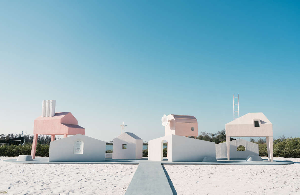 「當海回來時-他們這一家」所在處過去為鹽田,周邊住宅為早期鹽工住宅區,為了與周邊環境融合,設計上特別將過去傳統鹽工家庭成員的父親、母親、長子、么子的生存性格與人生經歷,搭配鹽分地帶文學詩詞寓意,轉化成不同外型的屋型裝置,並延伸各自所屬的視覺元素,例如煙囪、風車、花朵、爬梯等。本作品也找來臺南知名兒童藝術謝明奇老師帶領北門國小學童共同創作,並特別邀請北門井仔腳資深臺灣文學作家黃文博校長寫了一首臺語新詩「阮兜」結合在作品之中。整體作品遠看彷彿是聚落中的一處奇幻小聚落,加上作品外觀簡樸且沒有過多鮮豔色彩,強調與自然環境的一體感,搭配日照光線變化下,讓整體作品更偏向詩意。