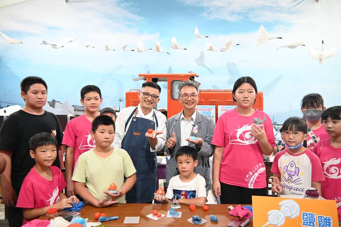 今日上午開幕儀式天公作美,雨勢暫歇,行政院雲嘉南聯合服務中心劉米山執行長、國軍南部地區人才招募中心陳永正副主任、臺南市議會方一峰議員、臺南市政府觀光旅遊局丁玲琍專門委員、臺南市七股區公所李佳隆區長、林俊憲立法委員辦公室洪嘉賓特助、陳亭妃立法委員辦公室黃佩菁秘書、謝龍介立法委員辦公室陳信宏主任、臺南市陳昆和議員辦公室黃三易副主任、蔡秋蘭議員辦公室黃福得特助、雕塑家蔡志福、台北喜來登大飯店食材造型藝術中心黃銘波老師、臺鹽實業股份有限公司李杰翰副總經理、臺灣守護文創股份有限公司陳仁昌董事長、特別有趣有限公司許可執行長以及多位雲嘉南濱海觀光、農漁相關產業協會代表、業者,還有北門、將軍、七股區國小校長、里長等貴賓蒞臨現場共襄盛舉。