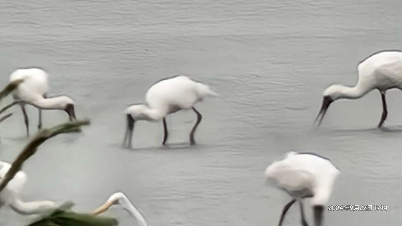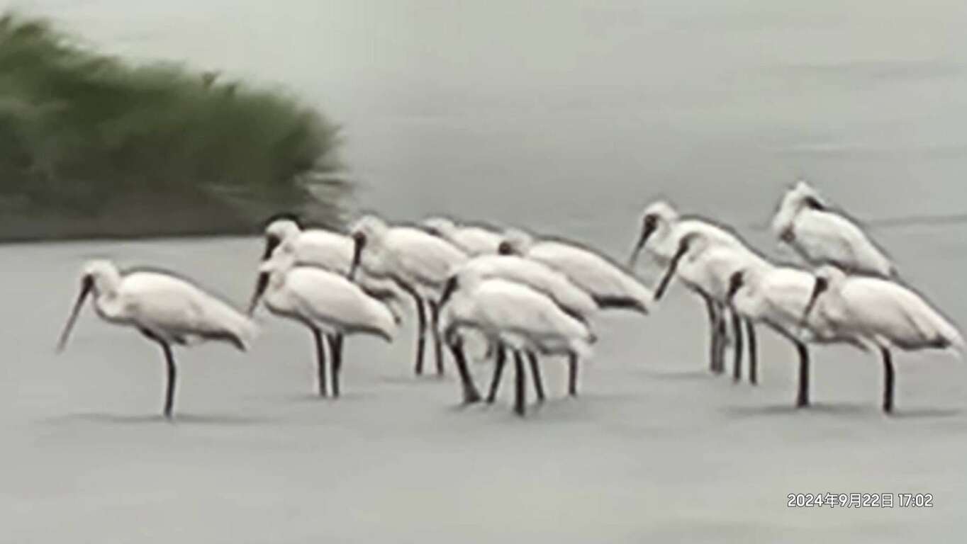 秋分時節,黑面琵鷺隨著秋天的腳步一同踏進了嘉義布袋。臺灣野鳥保育協會吳桂華於本月22日在嘉義縣立布袋國中發現了逾120隻黑面琵鷺在水中覓食。臺灣野鳥保育協會理事黃蜀婷表示,鳥友們非常驚喜在秋分當日看到破百數量的黑面琵鷺,預計將有更多候鳥陸續南下,候鳥季精彩可期。