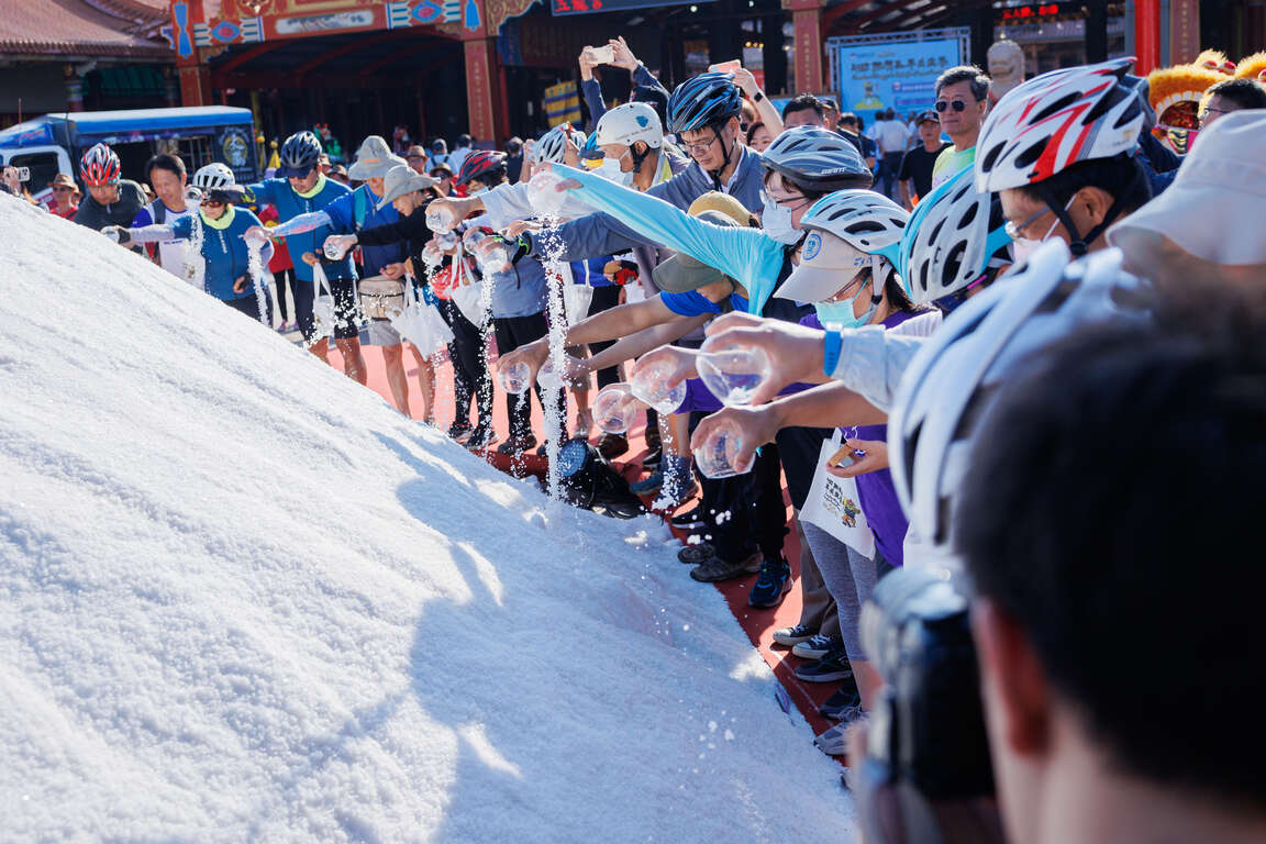 世界最大鹽祭典-鯤鯓王平安鹽祭即將於10月26日登場,限時號召民眾一同參加當日「祈福之旅-護鹽騎士」自行車護鹽行動,從鹽田出發,騎經多元自行車道(夕鹽段)至南鯤鯓代天府,從請鹽、護鹽到祭鹽,體驗鹽祭典的祈福過程。今年護鹽完成任務禮包括:請鹽能量球、背袋、祈福旗、平安鹽袋各1個,限量200位,報名時間自10月1日上午10時開放電子郵件報名,歡迎遊客與信眾一同前來朝聖。