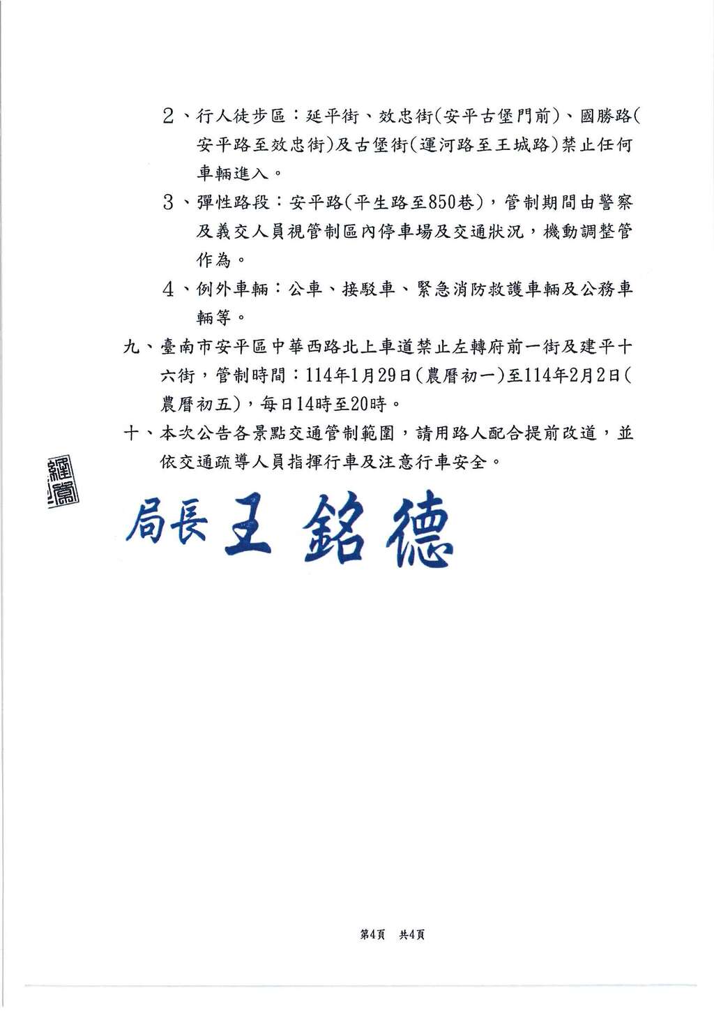 (一)交通管制時間:114年1月29日(農曆初一)至114年2月2日(農曆初五)每日8時至17時。