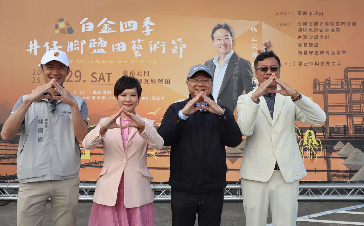 全臺首見鹽田古典音樂盛會感動落幕!由交通部觀光署雲嘉南濱海國家風景區管理處(以下簡稱雲管處)、台灣守護文創、晉基建設、晉基守護教育基金會共同主辦的《白金四季 井仔腳鹽田藝術節》春季場——《春25 張正傑鹽田夕陽音樂會》,於3月29日盛大開演,三角大鋼琴搬進百年曬鹽場,打造臺灣首場「讓鹽聽見古典樂」的沉浸式鹽田音樂會。由國際知名大提琴家張正傑率領弦外之音演出,攜手京劇美猴王朱陸豪、卡門女郎次女高音翁若珮、鋼琴家呂冠葶演出,現場貴賓雲集,包含臺語詩人謝安通、 攝影名家王素滿、資深曬鹽職人涂丁信、立法委員陳亭妃、立法委員郭國文、臺南市市長夫人劉育菁、臺南市政府民政局長姜淋煌、地政局長陳淑美、觀光旅遊局副局長鄭道立、林俊憲立法委員特助林鴻志、賴惠員立法委員祕書周麗那、謝龍介立法委員主任陳信宏、方一峰議員助理李寶桐、蔡蘇秋金議員助理周憲塘、陳昆和議員助理李佩玟、新北市政府警察局樹林分局長王子雄、臺南市政府警察局學甲分局長巫建德、台江國家公園管理處祕書洪政乾、臺南市北門區公所林建男區長、臺南市將軍區公所區長許博森、臺南市安南區公所副區長張介軍、臺南成功郵局經理梁麗妍、南鯤鯓代天府監事長邱敏華、瀨東泰安宮總幹事王武雄、蚵寮仔興安宮主委尤益欽,以及北門、文山、三慈、將軍國小校長、觀光相關協會業者代表、台灣守護文創股份有限公司董事長陳仁昌、總經理林國偉、晉基建設&晉基守護教育基金會董事長廖淑芬、交通部觀光署雲嘉南濱海國家風景區管理處處長徐振能等人。該活動吸引數千名觀眾湧入臺南北門井仔腳瓦盤鹽田,爭相目睹這場結合文化藝術、百年地景的音樂盛會。