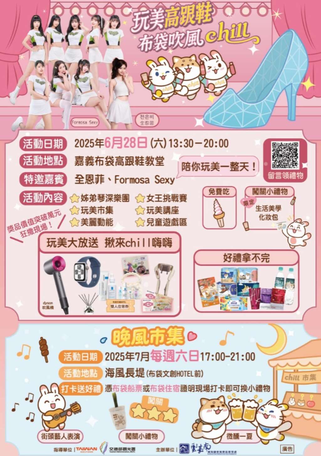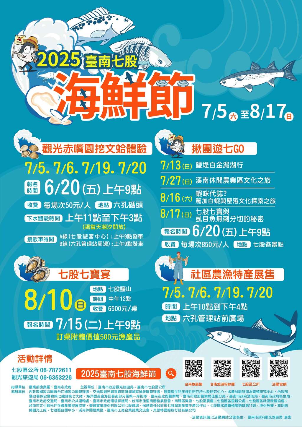 雲嘉南管理處表示,雲嘉南濱海國家風景區自暑假開始,將有一連串的活動登場,讓旅客享受豐富多元的旅程體驗。「玩美高跟鞋 布袋吹風chill」活動6月28日首先在嘉義布袋高跟鞋教堂開始,透過玩美市集及系列舞台活動,形塑「玩美高跟鞋」意象,並於7月份每週六、日布袋海風長堤辦理晚風市集,感受海風吹拂的微醺之夜;從7月5日起「2025臺南七股海鮮節」有親子最愛的挖文蛤體驗、七股七寶宴等活動;7月19日至20日的「2025臺南夏日音樂節─將軍吼」,獨具西濱特色的小旅行、美食及海洋音樂盛會;7月19、20、26、27日4天的「2025東石海之夏」,結合流行音樂會及親子活動;7月26、27日的「2025雲西海洋音樂季」,同樣結合音樂與親子活動,並與文創IP結合;以及7月26日起的「2025一見雙雕藝術季」,民眾可以在七股欣賞精緻鹽雕,夜晚則到井仔腳瓦盤鹽田感受璀璨光雕的魅力。一系列活動涵蓋文化、藝術、音樂、運動、美食及傳統節慶,讓雲嘉南的自然資源、地方文化和特色活動共同交融成一張縱橫三縣市的旅遊網,帶給旅客更立體而豐富的旅遊體驗。