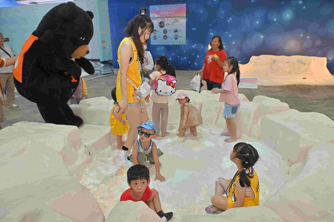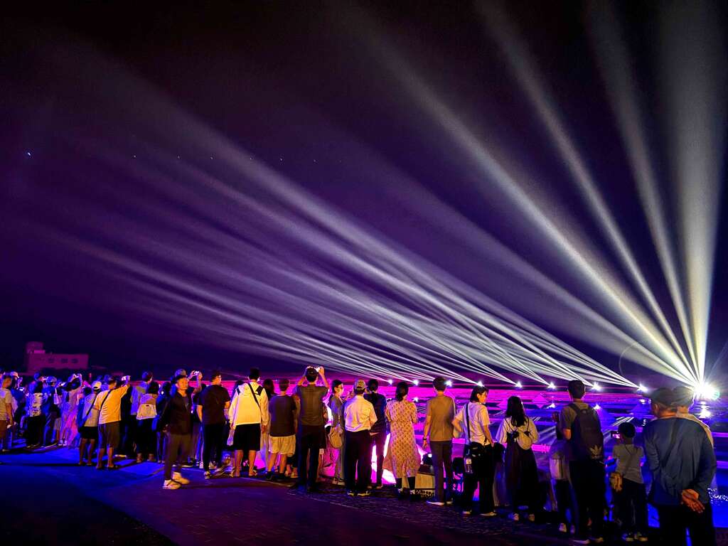 傍晚入夜則轉往北門井仔腳瓦盤鹽田,投入「光雕地景藝術」的沉浸式體驗,百年古鹽田在光影與音樂交織下再現光彩,《胖鯊魚鯊西米》串起整場故事線,帶領大家看見鹽鄉夜色與浪漫,光雕展演於活動期間每週五、六、日晚間 18:30–20:30,每30分鐘一場;並在北門遊客中心安排免費接駁車(17:00–21:00),提供遊客往返展區更加輕鬆、便利。