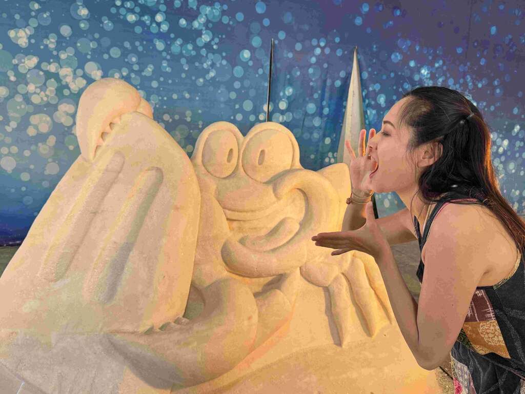 今年一見雙雕藝術季以LINE貼圖人氣明星《胖鯊魚鯊西米》串聯鹽雕與光雕兩大展區,陪伴大小朋友展開「鹽路去旅行」,白天於七股鹽山,《胖鯊魚鯊西米》化身導覽員,從鹽田文化、人文地標、在地美食,到親水互動的「鹽味泡腳池」、「沙灘戲鹽池」等藝術創作更是親子同遊的熱門景點。