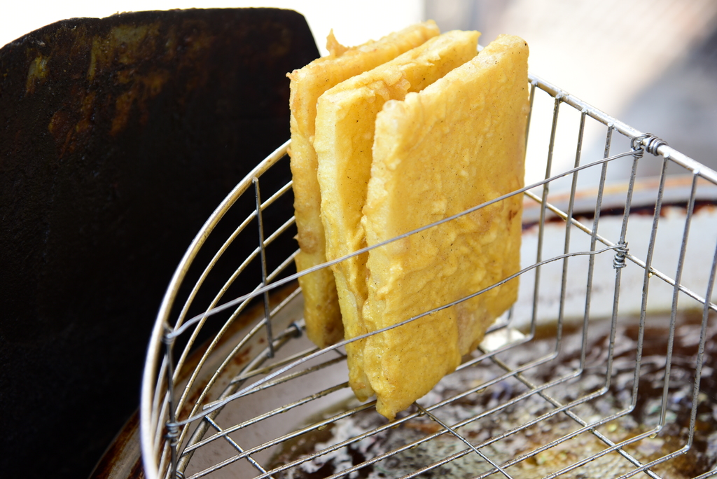 蚵仔是布袋當地自產,現剝的蚵仔,新鮮又大顆,「廟口蚵嗲」的蚵嗲,可以吃到飽實又新鮮的蚵仔,一口咬下去,皮薄酥脆外,蚵香盈口齒頰留香,令人回味再三。肉嗲的口味與眾不同,其豬肉為瘦肉,加五香粉、沙茶、醬油、糖…等調味料拌勻醃過,炸出的肉嗲口味極為特殊,是過溝當地人的最愛。而炸粿也不遑多讓,因為在「菜嗲」的年代,便已有「炸粿」了。